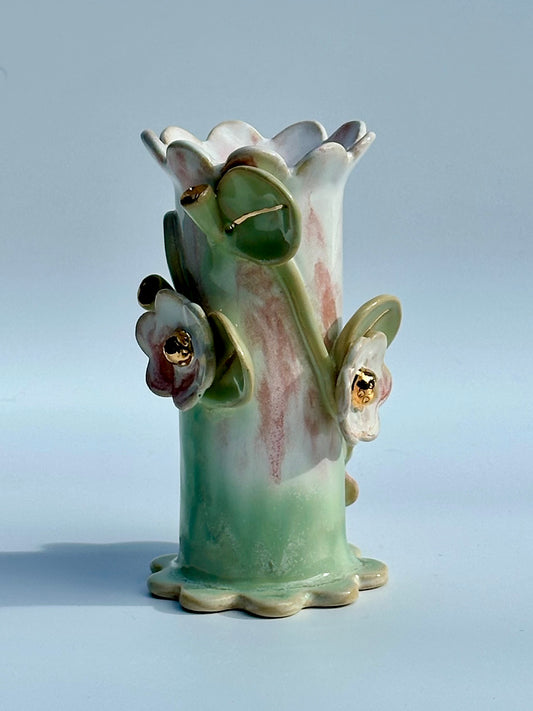 Melting Pinks and Green Speckled Flower and Flame Vase, Small