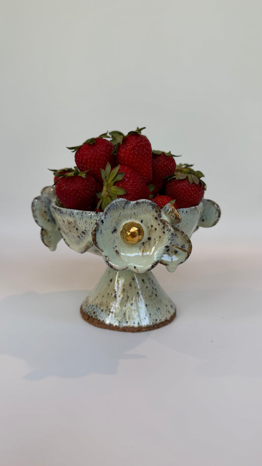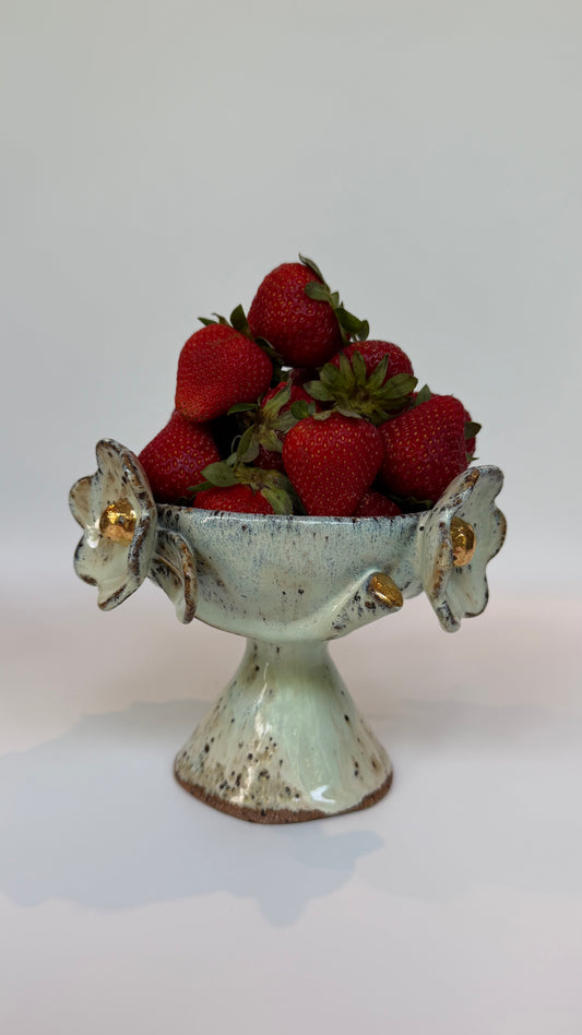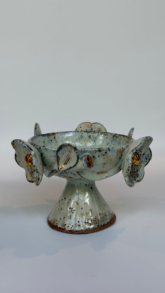 Green Speckled Bowl with Gold Lustered Blooms - Evie