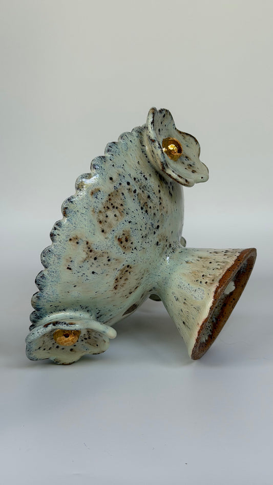 Green Speckled Bowl with Gold Lustered Blooms - Camila