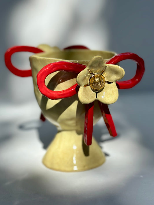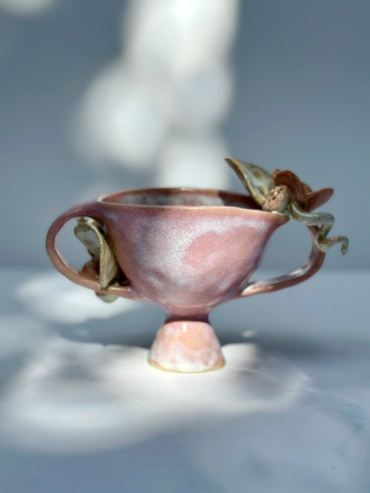 Lizzie, White Trophy with Leaf Handles and lustered blooms