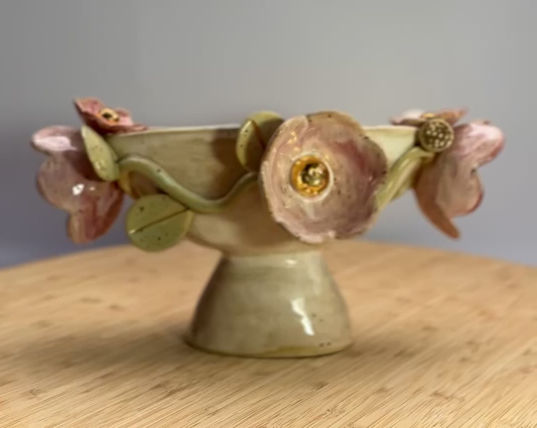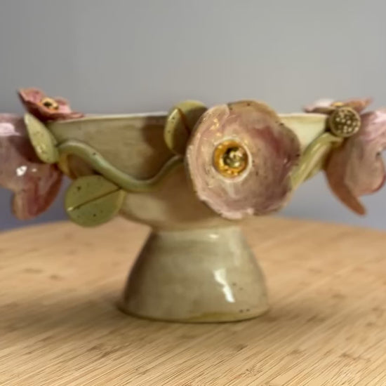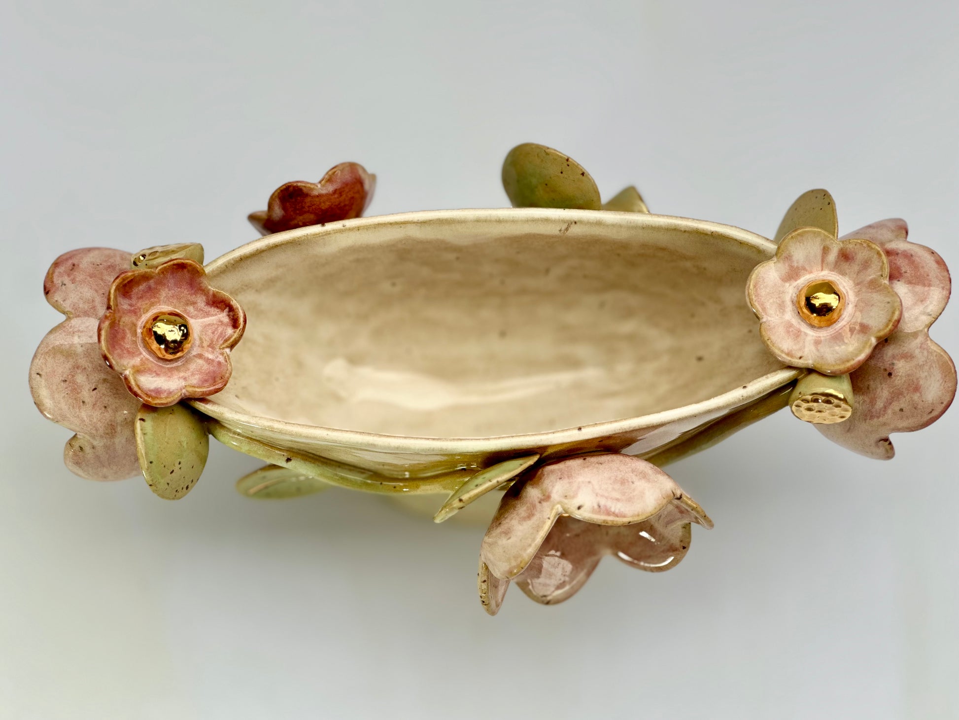 Blossom oval trophy with gold luster details on blooms and leaves