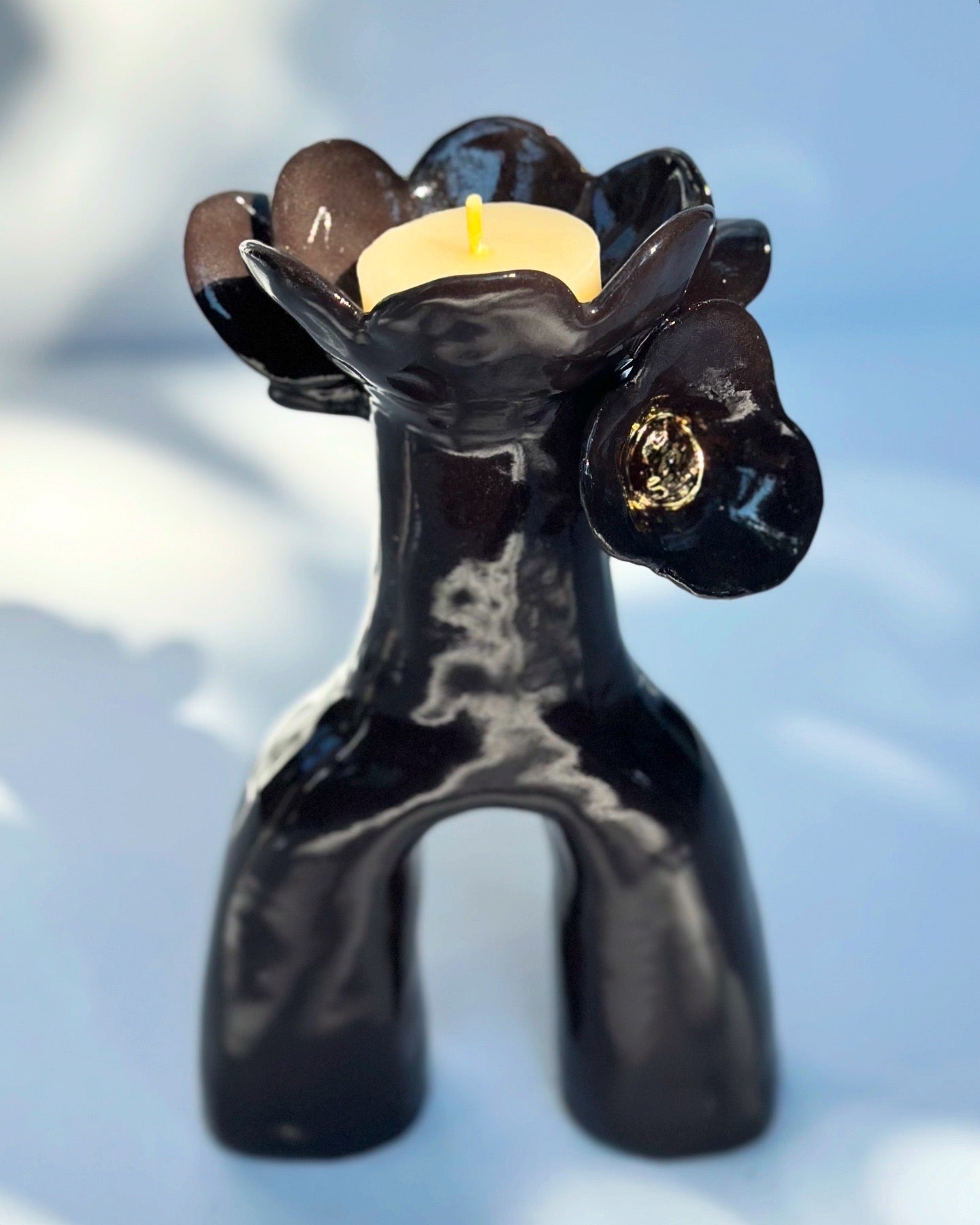 Flower and Flame Vase, Gloss Black
